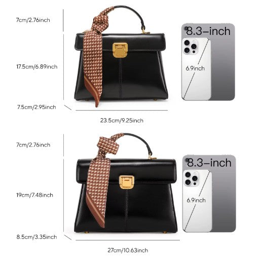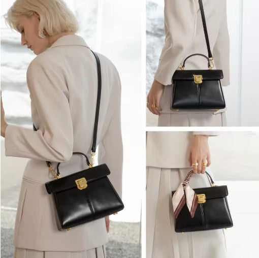 The Valentina Top Handle is the definition of refined statement luxury. Designed with a sleek structured silhouette, polished smooth finish, and a striking gold-tone front lock, this bag instantly elevates any outfit with timeless sophistication. The elegant top handle and detachable shoulder strap offer versatile styling for workdays, dinners, events, or everyday polished looks. Inside, the roomy compartment keeps essentials neatly organized without losing its graceful shape. Whether styled with tailoring, dresses, or casual denim, Valentina delivers that elevated designer-inspired finish every modern wardrobe needs. Free Shipping with Velaire & Sage.